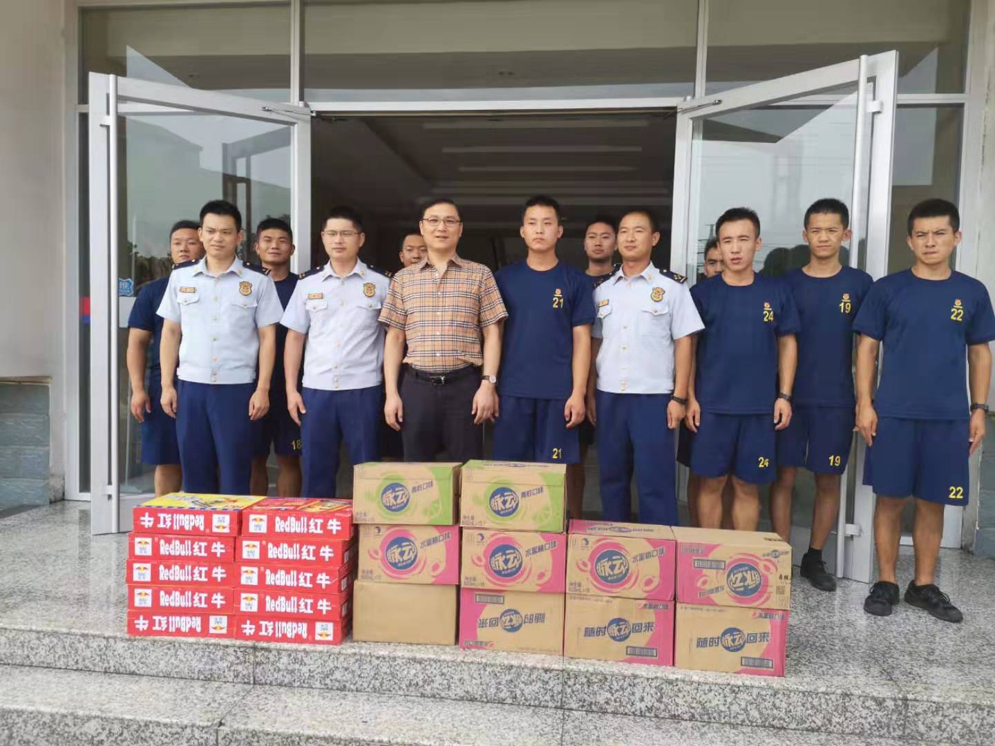 為迎接建軍92周年紀念,深入開展愛國擁軍實踐活動,江蘇僑達健康科技有限公司主要負責人前往徐州市賈汪消防大隊,推動軍地雙擁工作積極開展,為消防官兵們送上了消暑降溫的慰問品,并致以節日祝福。
